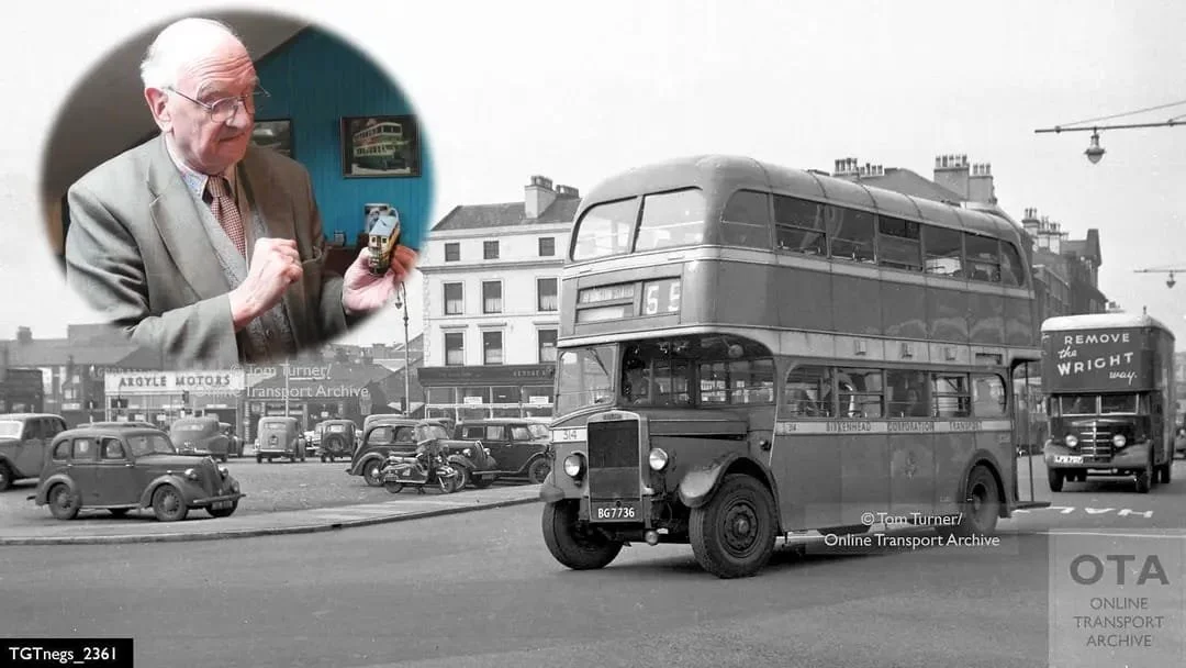Birkenhead 314 (BG7736), a Leyland TD5c (later converted to clutch and gearbox) with Massey body, new in October 1939. In set is photographer Tom Turner, a leading expert on Birkenhead Corporation Transport who passed away in 2025, whose collection is part of OTA.
